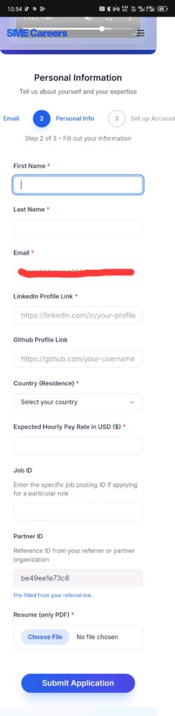 Step 3: When the personal information page opens, fill up all the necessary fields but do not fill in the “job ID” field as you are not applying for a specific role right now. In the expected salary field, put in any amount you are comfortable with receiving per hour. This is totally subjective and should be done by you.